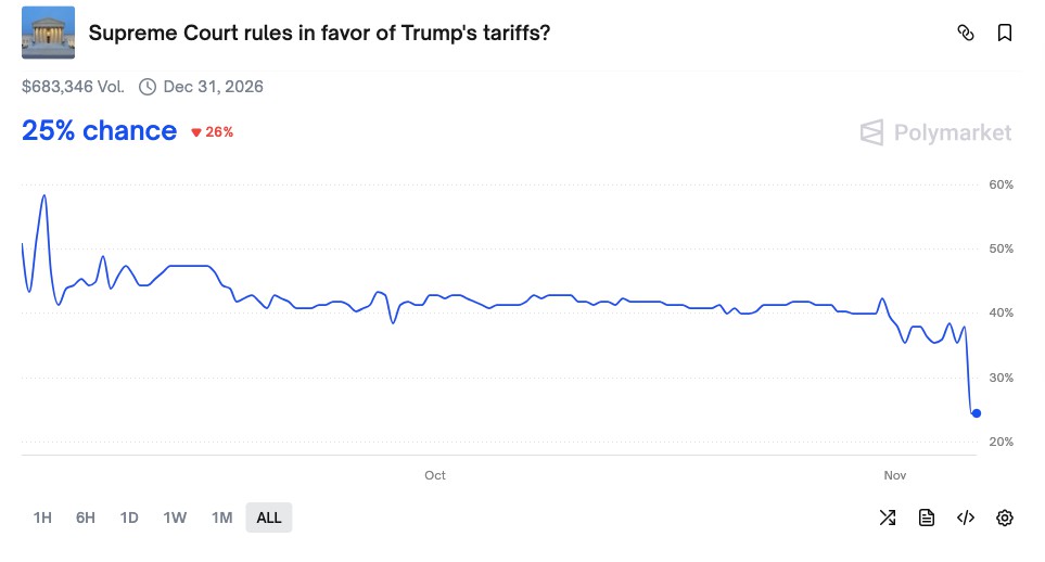 随着美国股市冷却其攀升至历史新高的势头,最高法院有可能推翻全面国际贸易关税的可能性至关重要。